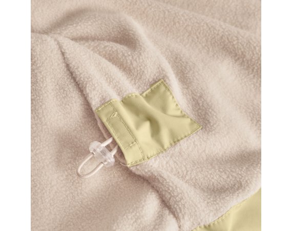 Jakken åpnes foran med en skrå glidelås og har vindstolpe på både utsiden og innsiden. Den er foret med myk, komfortabel og varm fleece og har en innvendig justerbar midje. Ermene har glattvevd fôr.