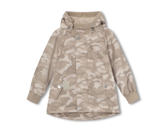 Jakken er foret med myk, komfortabel og varm fleece, har justerbar elastikk i midjen på innsiden, og myke ribbede kanter rundt håndleddene. Den har en avtagbar hette med elastisk vindbeskyttelse som holder vind og regn ute. Jakken har også stjernerefleks og logorefleks på sidene og baksiden.