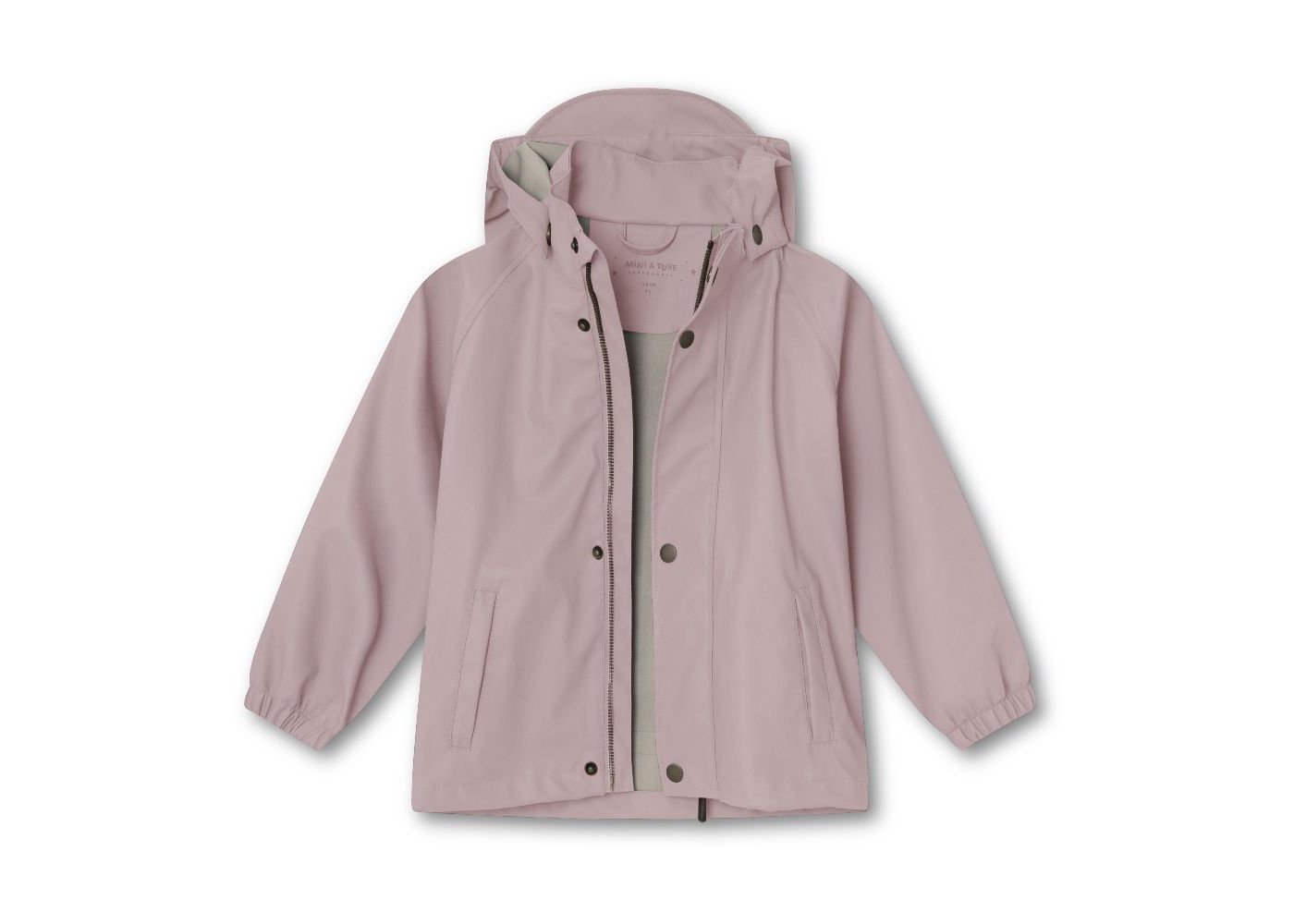 Regnsettet har MINI A TURE-logo på selene og fotstroppene.