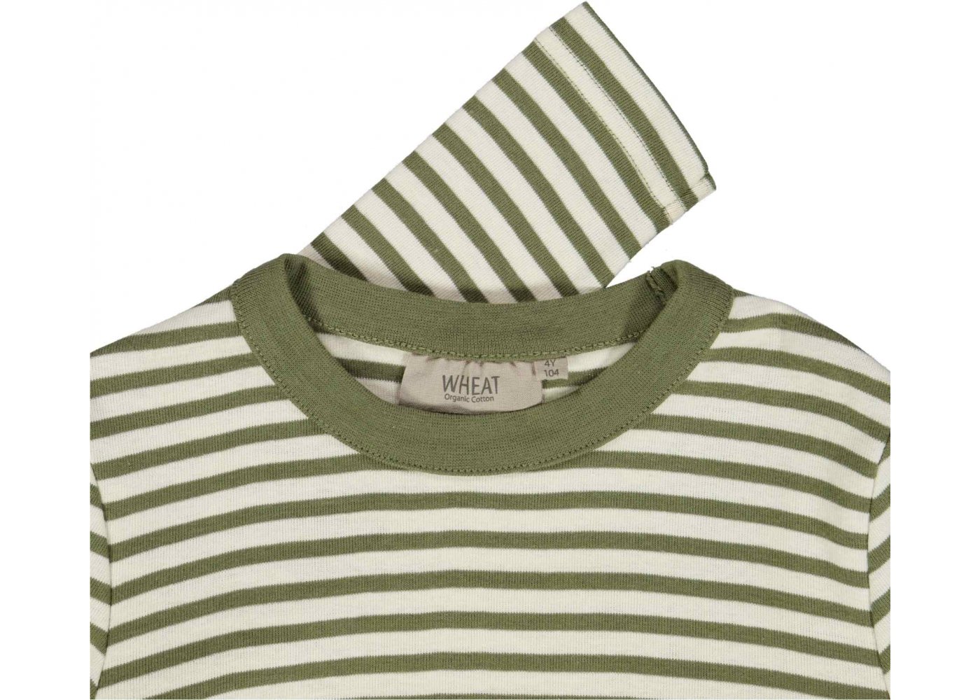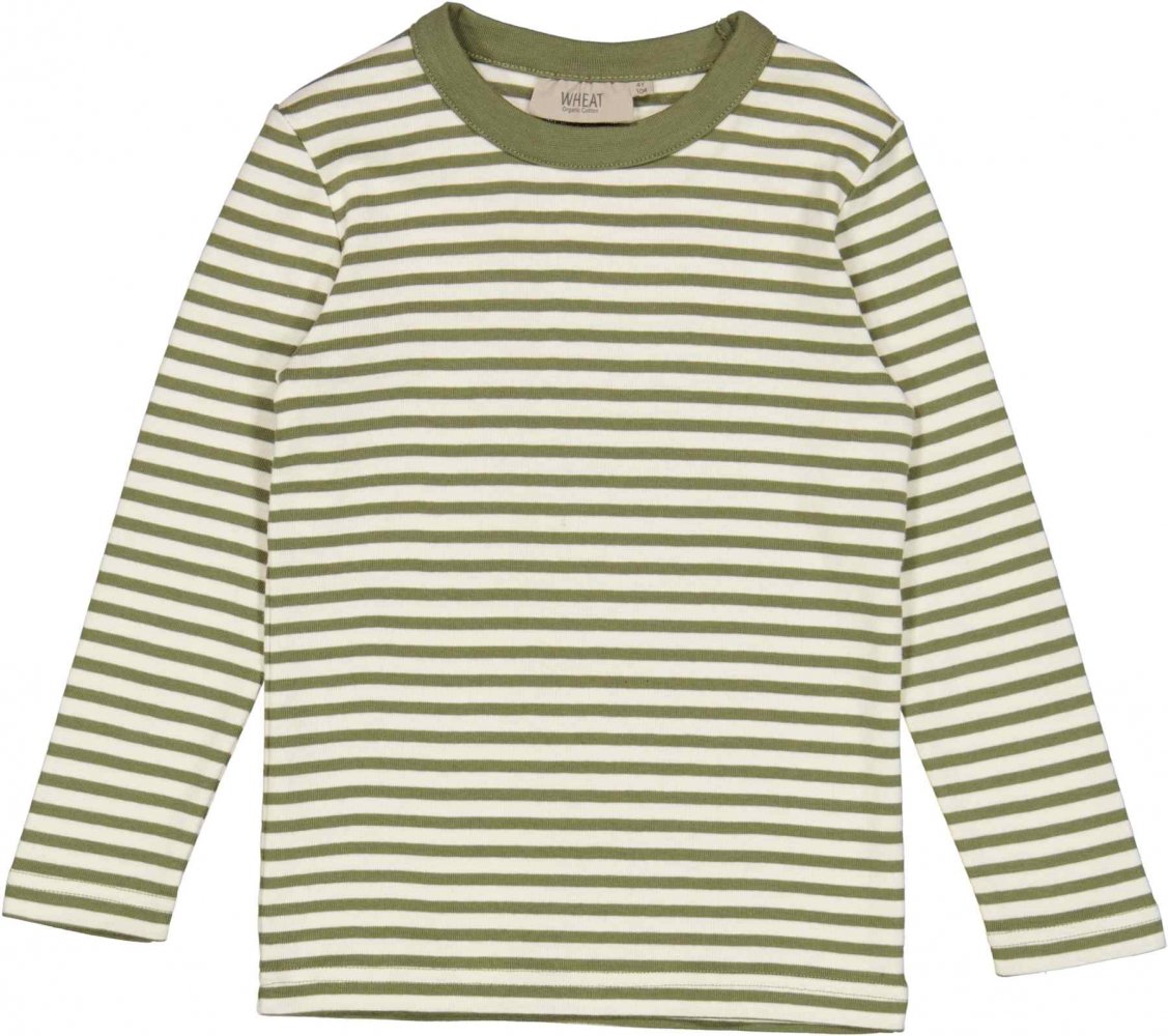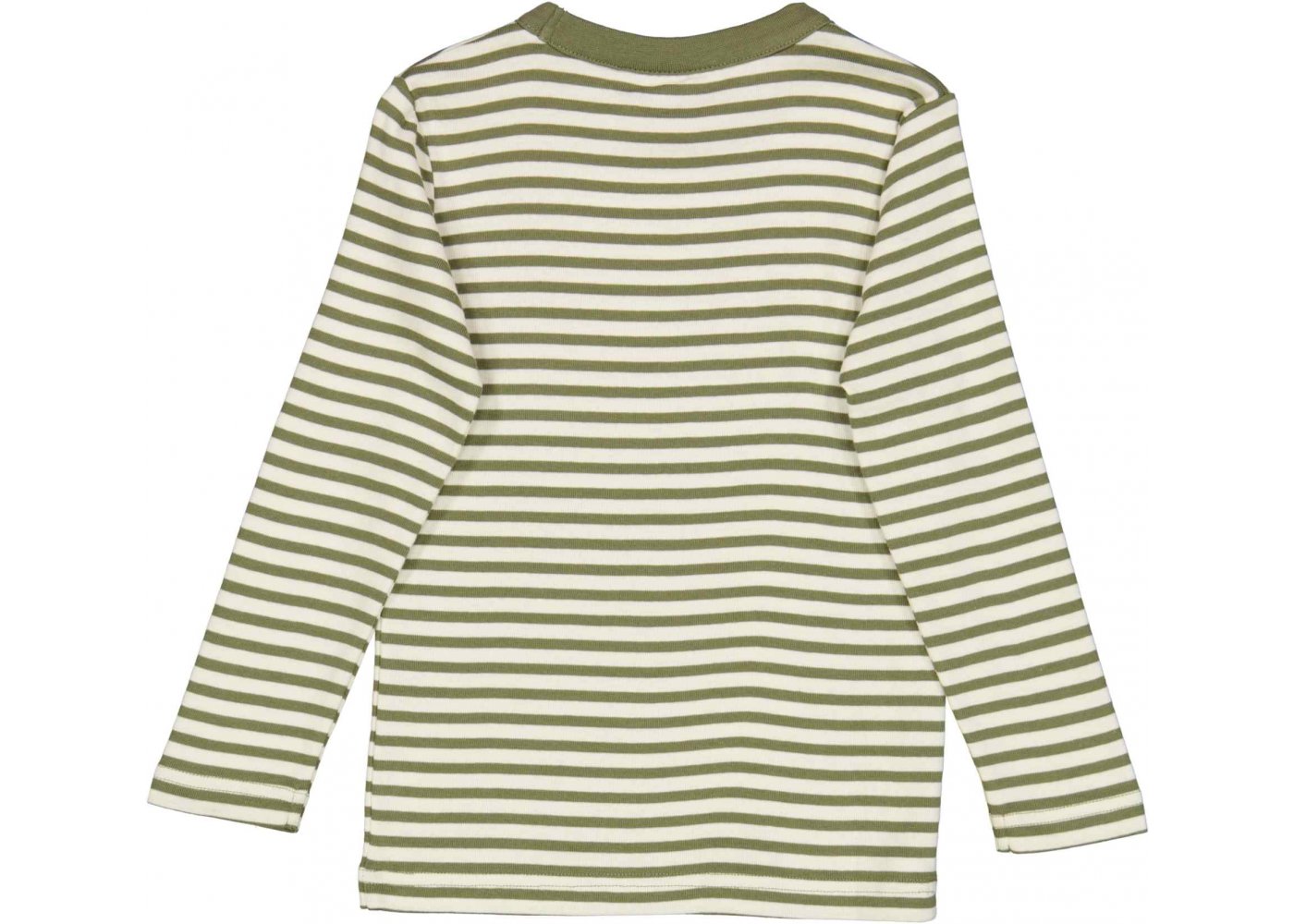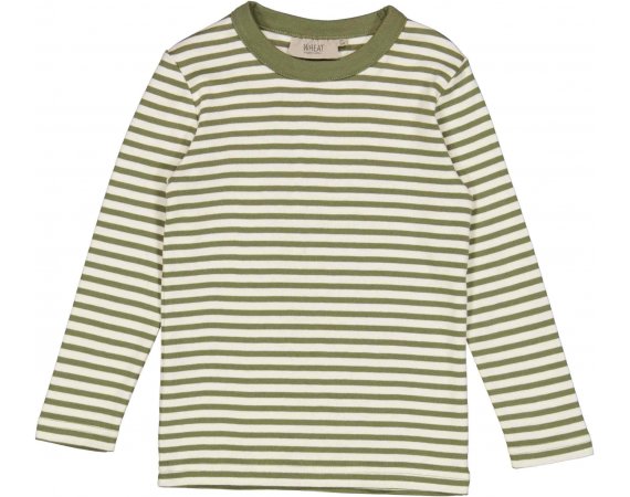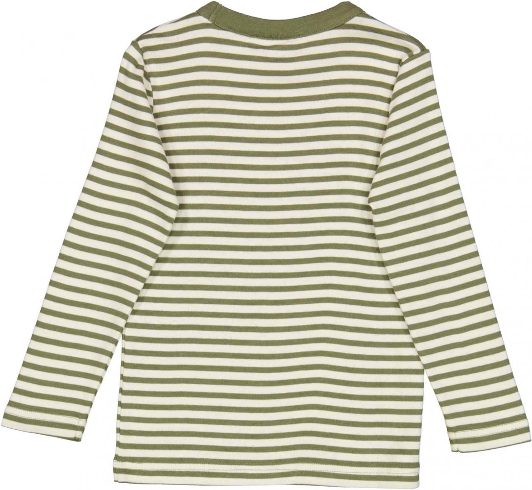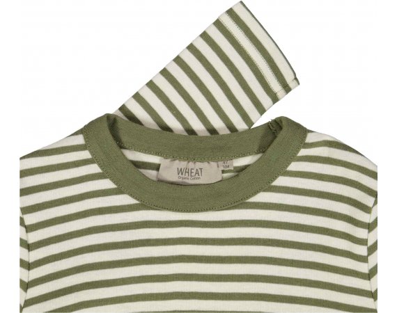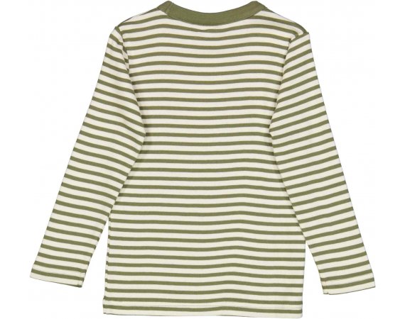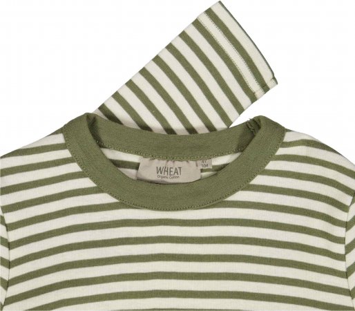 T-shirten lange ærmer og en smal grøn ribkant i halsåbning. T-shirten er lavet i en lækker og blød bomuldskvalitet.