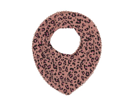 Superpraktisk smekke i to lag med leopardtrykk, med trykknapper i nakken fra Petit by Sofie Schnoor.Siklesmekken er i en yndig rosa farge, og har en fin heklet blondekant.