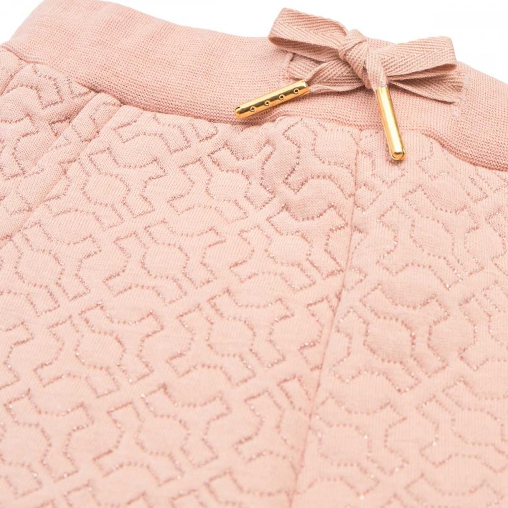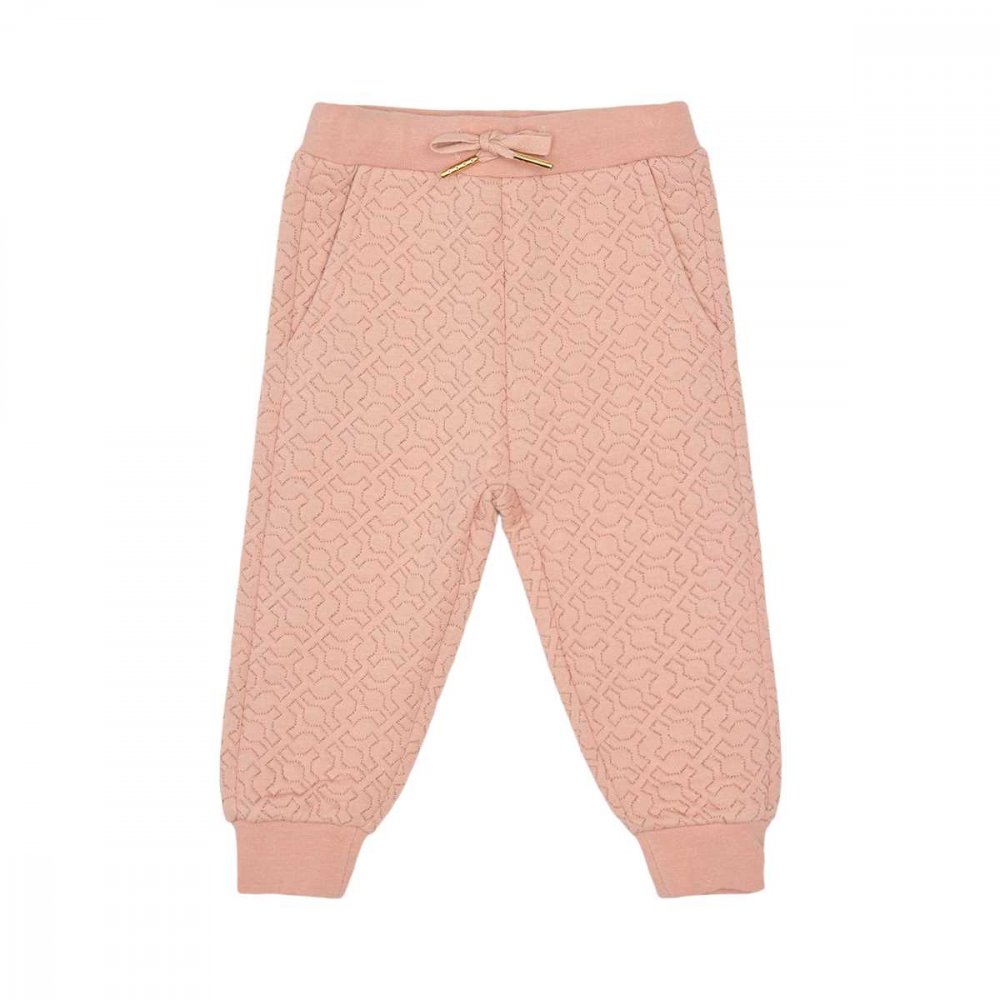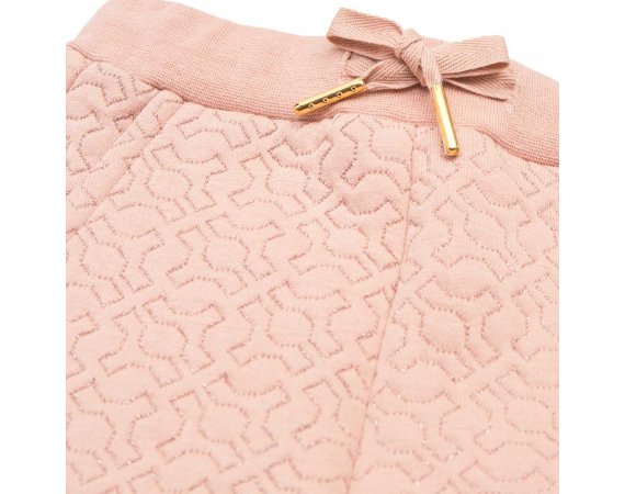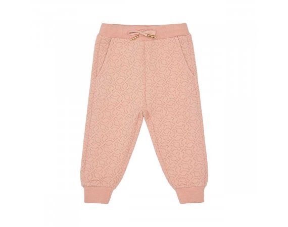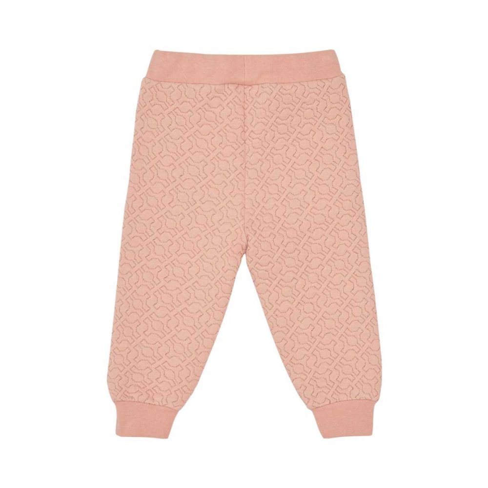 Sødte bukser i lyserosa med mønster og gullglitrede sømmerBuksen har brede ribbestrikkede kanter og snørebånd i livet.