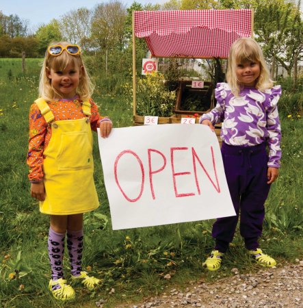 Trøyen har lange ermer, søt volangkant, og en fin ensfarget kant omkring halsen og håndleddene.