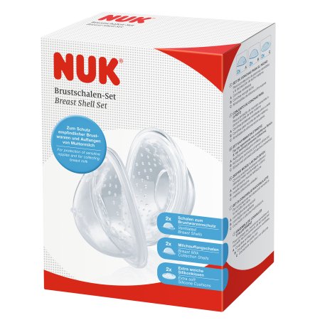 Brystpleiesett til beskyttelse og avlastning av ømme brystvorter og til oppsamling av brystmelk.Settet inneholder 6 deler.